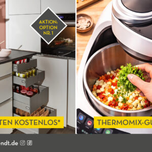Für alle, die noch mehr aus ihrer neuen Küche herausholen möchten: Beim Kauf einer Nolte Einbauküche ab 16.000 Euro gibt es einen Thermomix-Gutschein im Wert von 1.549 Euro obendrauf.